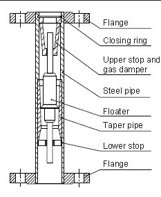 The flowmeter adopts to variable area measuring principle. The measuring device is composed of one taper measuring tube and floater. The floater can move freely up and down in the taper measuring pipe to change the flow area in the pipe.When the flow changes, the vertical position of the floater inside the measuring pipe changes correspondingly.Through magnetic transmitting system, the position of the floater is transmitted to the dial scale of the indicator to indicate the flow.